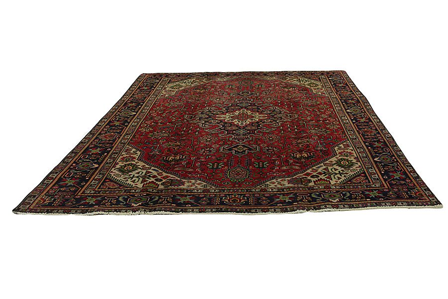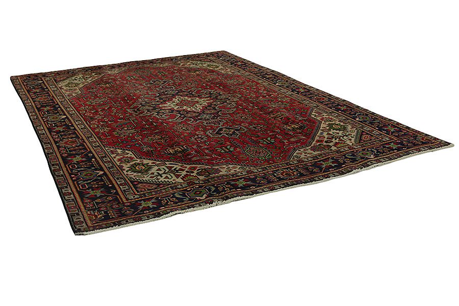 Tapis Tabriz: La ville Tabriz est la capitale de la province Azerbaïjan au sud-ouest d’Iran. Jusqu’à la fin de l’époque des caravanes Tabriz était le centre le plus important du commerce et du tissage des tapis. Par ici l’Ouest s’approvisionnait les chefs d’œuvres que des tisseurs renommés et capables tissent. Leurs qualités élevées ont fait les tapis connus aux marchés internationaux. Des atéliers des tapis noués à la main ont été crées où ils tissent de vieux et de nouveaux dessins avec une très grande densité en nœuds avec des matériaux de qualité excellente. La soie et la laine qualintative fine font les tapis de première classe. C’est la seule ville de Perse qui produit un si grand volume et et une si grande variété des tapis. Les tapis Tabriz sont impossants et ils ont leur style et leur originalité avec ou sans médaillon, avec des dessins pleins de l’imagination et de l’unicité des fleurs, des répresentations, des strophes, des poèmes à des couleurs comme le beige, le bleu et le rouge