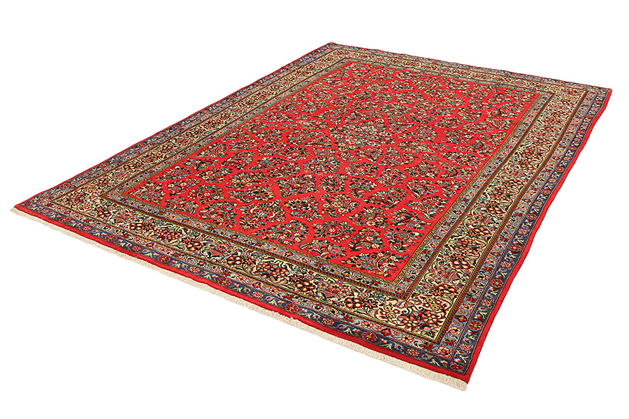 Tapis Sarouk: Les tapis Sarouk ont une grande histoire. Ils sont tissés au bourg Sarouk mais aussi à la ville Arak et aux régions alentours. Les nom des tapis de la région sont aussi Feraghan, Feraghan Sarouk, Mahal, Mohajaran Sarouk, Mushkabad et Viss/Golpayegan. Les premières réussites des tapis sont dûes (la plupart des fois) au marché d’Amérique. Les Sarouks continuent aujourd’hui à être populaires parmi les tapis persans et ils sont fabriqués de laine de très bonne qualité. Les dessins sont surtout fleuris (floral style) à des nuances du rouge, du beige, d’ivoire et du bleu. Les meilleurs Sarouk viennent de la petite ville Ghiassabad.