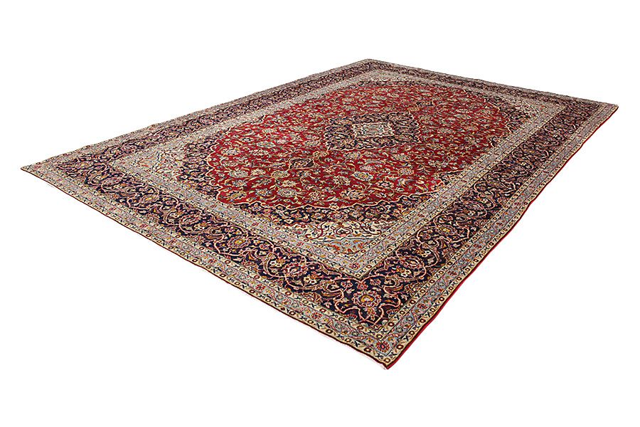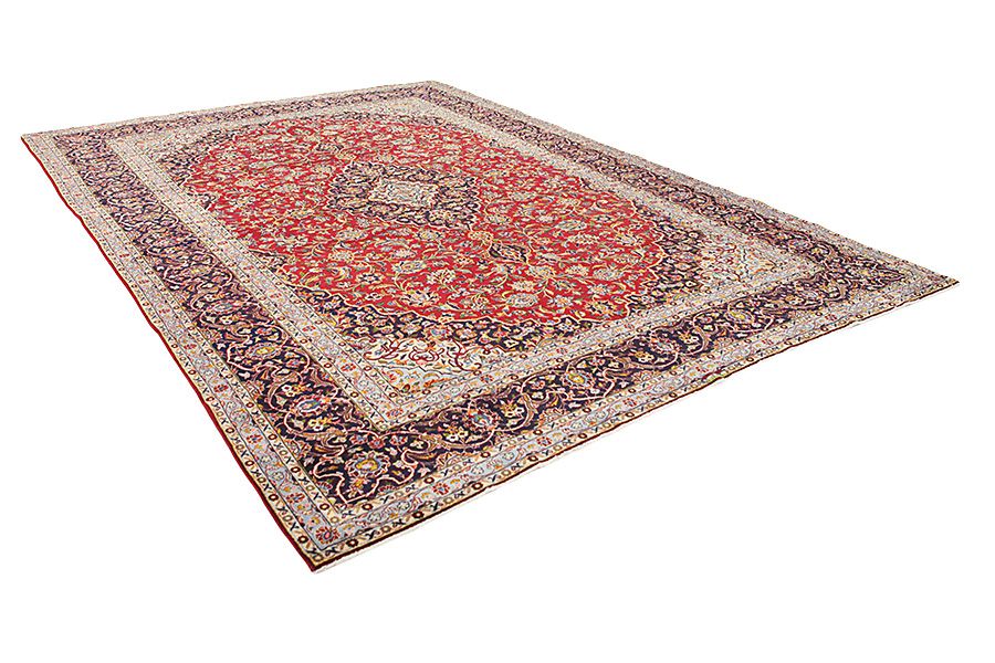 Tapis Kashan: Entre Isfahan et Téhéran près de la desert Dast-e-kavir se trouve la ville Kasham. La ville est très connue pour les tapis noués à la main, les produits textiles et les poteries. La ville ou plusieurs échanges commerciaux sont faites, est importante parce qu’ elle est un lieu de detente tout au long de la route de soie. Le fameux tapis Ardebil qui se trouve au « Victoria and Albert Museum » est consideré qu’il est tissé à Kashan au 16ième siècle.La production bien organisée des tapis noués à la main par des tisseurs très rénommés commence en 1800. Les tapis Kashan ont acquis de la bonne réputation et leurs succès est dû à trois facteurs : à la grande variété des beaux dessins avec des belles couleurs à la laine brillante et douce qui donne une surface veloutée et à l’événement que d’Isfahan viennent plusieurs tisseurs qui sont des artisants des tapis capables et renommés.