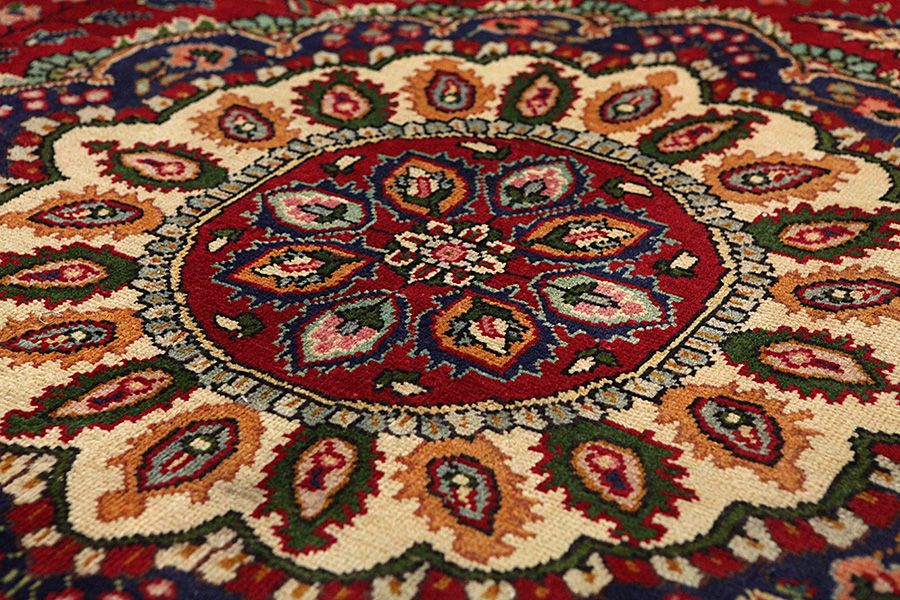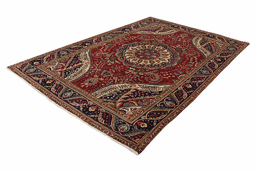 Tapis Tabriz: La ville Tabriz est la capitale de la province Azerbaïjan au sud-ouest d’Iran. Jusqu’à la fin de l’époque des caravanes Tabriz était le centre le plus important du commerce et du tissage des tapis. Par ici l’Ouest s’approvisionnait les chefs d’œuvres que des tisseurs renommés et capables tissent. Leurs qualités élevées ont fait les tapis connus aux marchés internationaux. Des atéliers des tapis noués à la main ont été crées où ils tissent de vieux et de nouveaux dessins avec une très grande densité en nœuds avec des matériaux de qualité excellente. La soie et la laine qualintative fine font les tapis de première classe. C’est la seule ville de Perse qui produit un si grand volume et et une si grande variété des tapis. Les tapis Tabriz sont impossants et ils ont leur style et leur originalité avec ou sans médaillon, avec des dessins pleins de l’imagination et de l’unicité des fleurs, des répresentations, des strophes, des poèmes à des couleurs comme le beige, le bleu et le rouge