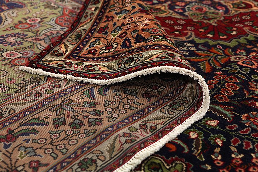 Tapis Tabriz: La ville Tabriz est la capitale de la province Azerbaïjan au sud-ouest d’Iran. Jusqu’à la fin de l’époque des caravanes Tabriz était le centre le plus important du commerce et du tissage des tapis. Par ici l’Ouest s’approvisionnait les chefs d’œuvres que des tisseurs renommés et capables tissent. Leurs qualités élevées ont fait les tapis connus aux marchés internationaux. Des atéliers des tapis noués à la main ont été crées où ils tissent de vieux et de nouveaux dessins avec une très grande densité en nœuds avec des matériaux de qualité excellente. La soie et la laine qualintative fine font les tapis de première classe. C’est la seule ville de Perse qui produit un si grand volume et et une si grande variété des tapis. Les tapis Tabriz sont impossants et ils ont leur style et leur originalité avec ou sans médaillon, avec des dessins pleins de l’imagination et de l’unicité des fleurs, des répresentations, des strophes, des poèmes à des couleurs comme le beige, le bleu et le rouge