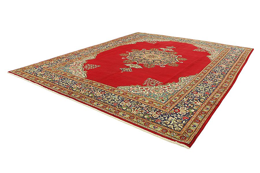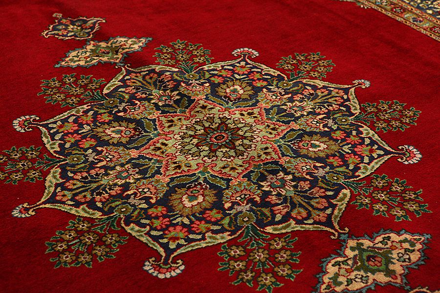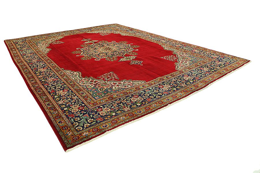 Tapis Tabriz: La ville Tabriz est la capitale de la province Azerbaïjan au sud-ouest d’Iran. Jusqu’à la fin de l’époque des caravanes Tabriz était le centre le plus important du commerce et du tissage des tapis. Par ici l’Ouest s’approvisionnait les chefs d’œuvres que des tisseurs renommés et capables tissent. Leurs qualités élevées ont fait les tapis connus aux marchés internationaux. Des atéliers des tapis noués à la main ont été crées où ils tissent de vieux et de nouveaux dessins avec une très grande densité en nœuds avec des matériaux de qualité excellente. La soie et la laine qualintative fine font les tapis de première classe. C’est la seule ville de Perse qui produit un si grand volume et et une si grande variété des tapis. Les tapis Tabriz sont impossants et ils ont leur style et leur originalité avec ou sans médaillon, avec des dessins pleins de l’imagination et de l’unicité des fleurs, des répresentations, des strophes, des poèmes à des couleurs comme le beige, le bleu et le rouge