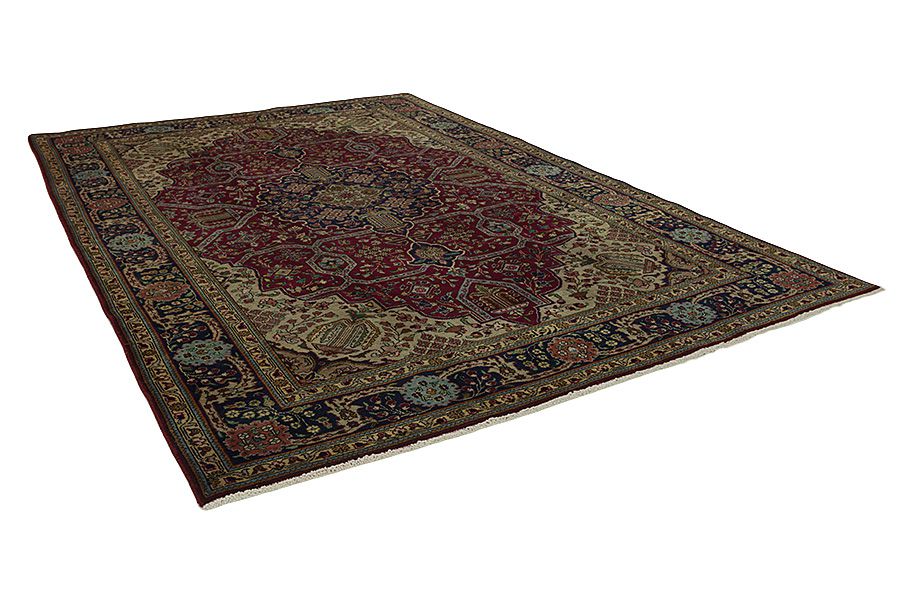 Tapis Tabriz: La ville Tabriz est la capitale de la province Azerbaïjan au sud-ouest d’Iran. Jusqu’à la fin de l’époque des caravanes Tabriz était le centre le plus important du commerce et du tissage des tapis. Par ici l’Ouest s’approvisionnait les chefs d’œuvres que des tisseurs renommés et capables tissent. Leurs qualités élevées ont fait les tapis connus aux marchés internationaux. Des atéliers des tapis noués à la main ont été crées où ils tissent de vieux et de nouveaux dessins avec une très grande densité en nœuds avec des matériaux de qualité excellente. La soie et la laine qualintative fine font les tapis de première classe. C’est la seule ville de Perse qui produit un si grand volume et et une si grande variété des tapis. Les tapis Tabriz sont impossants et ils ont leur style et leur originalité avec ou sans médaillon, avec des dessins pleins de l’imagination et de l’unicité des fleurs, des répresentations, des strophes, des poèmes à des couleurs comme le beige, le bleu et le rouge
