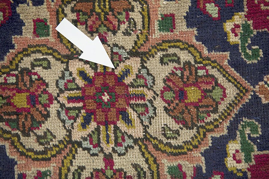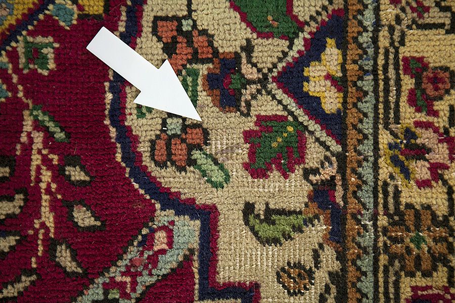 Tapis Abrash: Grâce à leur graisse différente de la laine et la quantité différente du sel pendant le processus de la teinture la laine a une différence absorptivité en ce qui concerne la qualité du couleur. Avant le tissage ce résultat n’est pas visible. Pendant le tissage des séries des nuances de la même couleur sont produits. On appelle cela "Abrash" et il nous montre que les laines ne sont pas traitées avec des matériels chimiques et ils sont laissés à montrer leur aspect naturel et leur originalité. Exemples