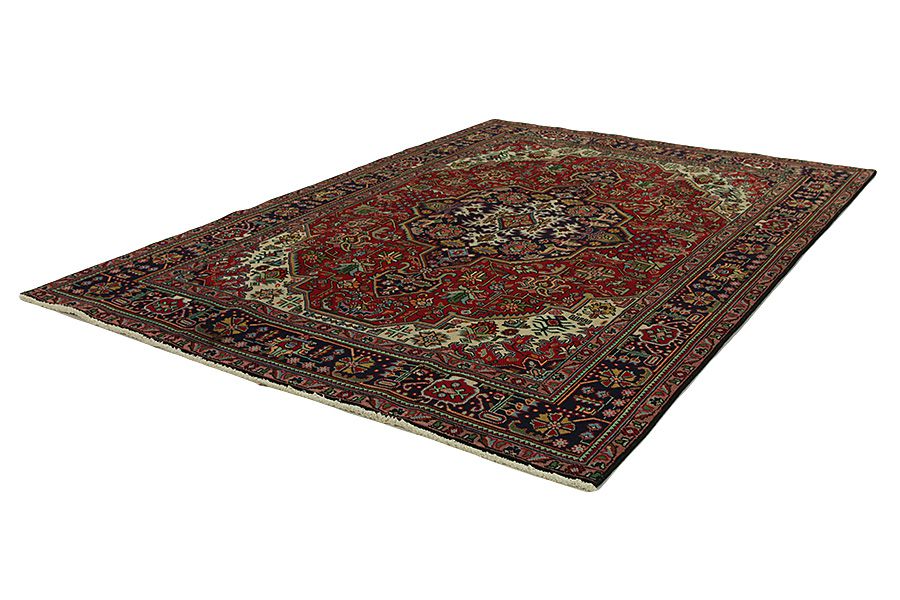 Tapis Tabriz: La ville Tabriz est la capitale de la province Azerbaïjan au sud-ouest d’Iran. Jusqu’à la fin de l’époque des caravanes Tabriz était le centre le plus important du commerce et du tissage des tapis. Par ici l’Ouest s’approvisionnait les chefs d’œuvres que des tisseurs renommés et capables tissent. Leurs qualités élevées ont fait les tapis connus aux marchés internationaux. Des atéliers des tapis noués à la main ont été crées où ils tissent de vieux et de nouveaux dessins avec une très grande densité en nœuds avec des matériaux de qualité excellente. La soie et la laine qualintative fine font les tapis de première classe. C’est la seule ville de Perse qui produit un si grand volume et et une si grande variété des tapis. Les tapis Tabriz sont impossants et ils ont leur style et leur originalité avec ou sans médaillon, avec des dessins pleins de l’imagination et de l’unicité des fleurs, des répresentations, des strophes, des poèmes à des couleurs comme le beige, le bleu et le rouge