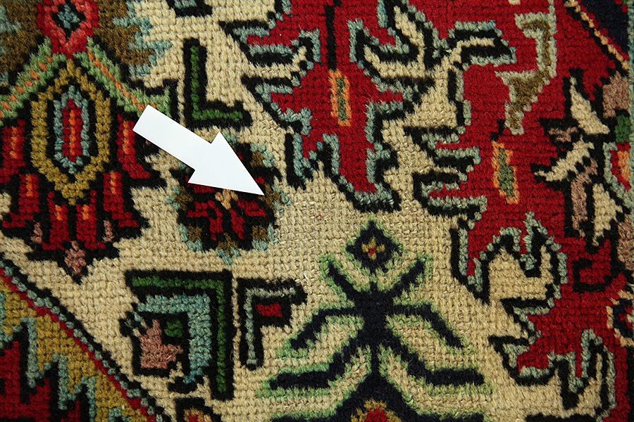 Tapis Abrash: Grâce à leur graisse différente de la laine et la quantité différente du sel pendant le processus de la teinture la laine a une différence absorptivité en ce qui concerne la qualité du couleur. Avant le tissage ce résultat n’est pas visible. Pendant le tissage des séries des nuances de la même couleur sont produits. On appelle cela "Abrash" et il nous montre que les laines ne sont pas traitées avec des matériels chimiques et ils sont laissés à montrer leur aspect naturel et leur originalité. Exemples