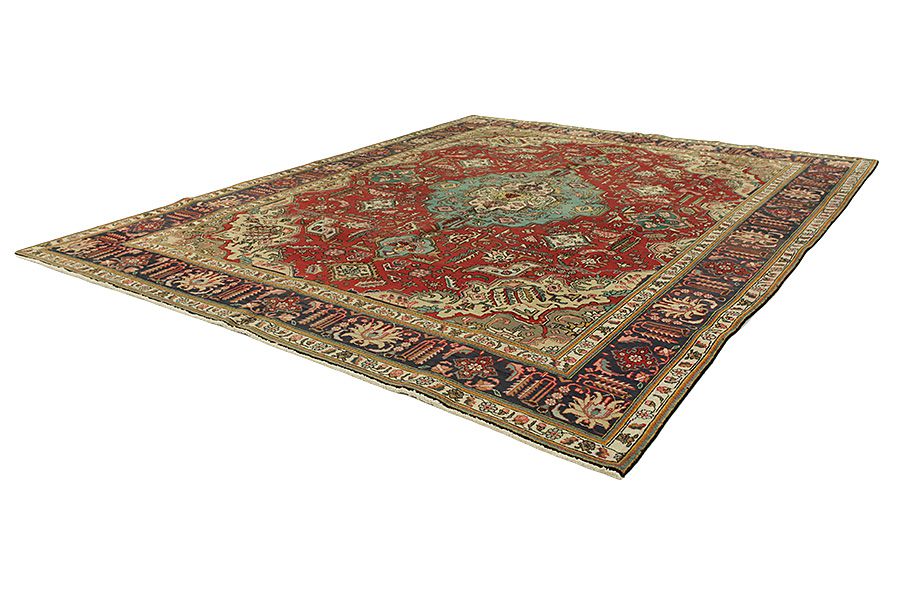 Tapis Tabriz: La ville Tabriz est la capitale de la province Azerbaïjan au sud-ouest d’Iran. Jusqu’à la fin de l’époque des caravanes Tabriz était le centre le plus important du commerce et du tissage des tapis. Par ici l’Ouest s’approvisionnait les chefs d’œuvres que des tisseurs renommés et capables tissent. Leurs qualités élevées ont fait les tapis connus aux marchés internationaux. Des atéliers des tapis noués à la main ont été crées où ils tissent de vieux et de nouveaux dessins avec une très grande densité en nœuds avec des matériaux de qualité excellente. La soie et la laine qualintative fine font les tapis de première classe. C’est la seule ville de Perse qui produit un si grand volume et et une si grande variété des tapis. Les tapis Tabriz sont impossants et ils ont leur style et leur originalité avec ou sans médaillon, avec des dessins pleins de l’imagination et de l’unicité des fleurs, des répresentations, des strophes, des poèmes à des couleurs comme le beige, le bleu et le rouge
