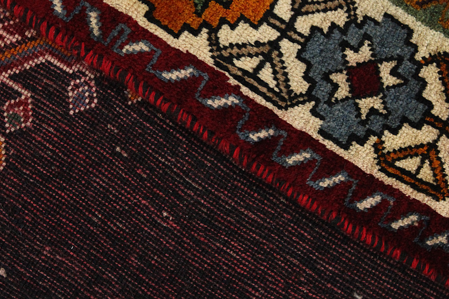 Tapis Qashqai: Les tapis Qashqai sont tissés par des nomades qui vivent à des régions montegnardes de Perse aux provinces de Fars, Kuzestan, au sud d’Isfahan et autour de la région de la ville Shiraz. Les tapis ont une grande densité en nœuds et une grande variété de dessins et en utilisant surtout le rouge profond et le bleu. Ils tissent des tapis, des kilims et des tissus décoratifs (des rubans, des sacs e.t.c) dans lesquels ils répresentent des instantanés de leur vie avec des représentations des hommes des animaux, des arbres et des fleurs. Aussi ils representent des images par des monuments historiques, surtout de Persepolis. Ils savent des dessins différents par cœur et ils tissent librement sans la contrainte sévère d’un dessin illustré.
