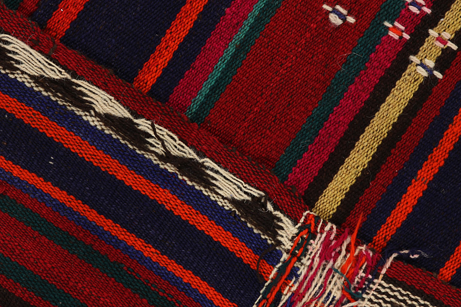 Kilim: C’est le type du tissé sans tissage qui est précedent du tapis avec du tissage et surtout des nomades le fabriquent. Plusiers fois il n’y a pas de bon côté ou de mauvais côté et il peut être déroulé aussi par tous les deux côtés du tapis.