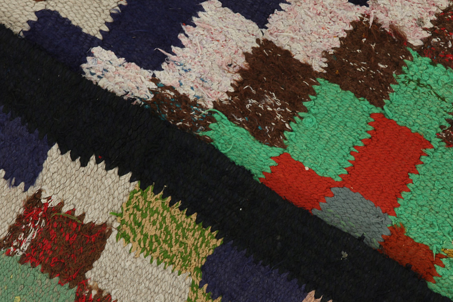 Tissé à l’un ou à tous les deux côtés du largeur du tapis: À quelques tapis les nomades à une côté tissent des franges à un kilim étroit qu’ils les tissent des petites tresses. C’est la technique des tisseurs différents pour reussir une meilleure résistance ou pour montrer leur habilété. Exemples