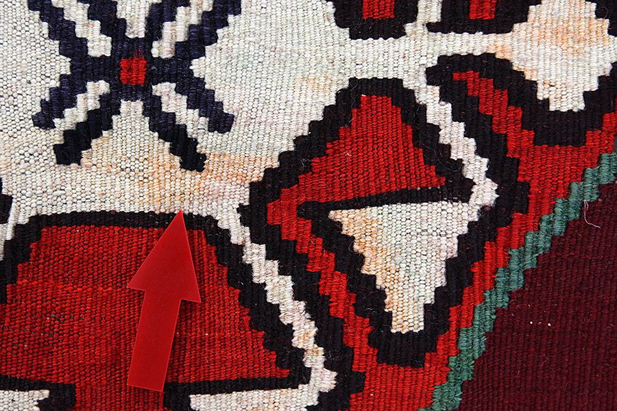 Tissé à l’un ou à tous les deux côtés du largeur du tapis: À quelques tapis les nomades à une côté tissent des franges à un kilim étroit qu’ils les tissent des petites tresses. C’est la technique des tisseurs différents pour reussir une meilleure résistance ou pour montrer leur habilété. Exemples