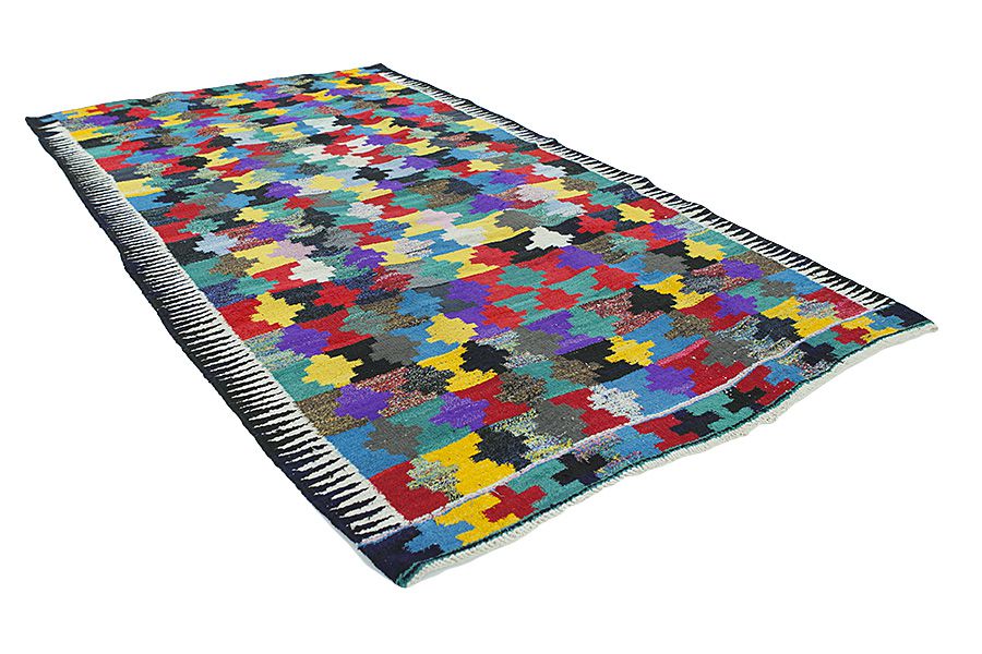 Tapis Kilim: C’est un type prècis du tapis-tissé sans velours (qui est le type précédent de celui avec le velours) et ils sont fabriqués surtout par des nomades en Perse, en Afghanistan, en Turquie et à des régions différentes de Caucasse. Il s’agit des tissés pas de grandes dimensions avec un tissage simple, sans velours. Ils ont comme des caractèristiques des figures géometriques et des associations des couleurs très riches. Des matières naturelles comme la laine sont utilisés pour le tissage et quelquefois aussi la soie pour les kilims plus legers et plus fins. Le chromatisme du fil est fait par des plantes et des métaux qui donnent de beaux nuances naturels. La tradition séculaire des kilims se perd aux siècles aux nomades d’Asie centrale. D’abord, les kilims étaient surtout des articles d’utilisation domestique et plus tard sont devenus des produits commercialisables en suivant les meilleurs techniques de la tapisserie d’ est pendant le 16ième et le 17ième siècle. Ils ont aussi plusieurs utilisations et ils peuvent être utilisés au plancher comme des couvertures ou pour décoration aux murs. Le nom Kilim vient du mot persan gelim. Ils s’appellent Berr en kurde. Les plus fameux kilims persans sont les kilims Sumakh, Senneh, Fars et Ghashghai. Des kilims afghans sont les kilims Golbariasta, Maimane, Taimani, Maliki e.t.c Plusiers kilims sont tissés aussi aux frontières entre la Perse et l’Afghanistan par des nomades de Balouch avec les couleurs foncées de Terre.