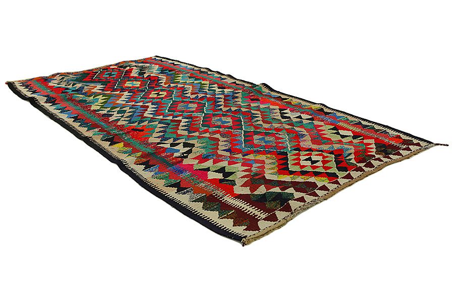 Tapis Kilim: C’est un type prècis du tapis-tissé sans velours (qui est le type précédent de celui avec le velours) et ils sont fabriqués surtout par des nomades en Perse, en Afghanistan, en Turquie et à des régions différentes de Caucasse. Il s’agit des tissés pas de grandes dimensions avec un tissage simple, sans velours. Ils ont comme des caractèristiques des figures géometriques et des associations des couleurs très riches. Des matières naturelles comme la laine sont utilisés pour le tissage et quelquefois aussi la soie pour les kilims plus legers et plus fins. Le chromatisme du fil est fait par des plantes et des métaux qui donnent de beaux nuances naturels. La tradition séculaire des kilims se perd aux siècles aux nomades d’Asie centrale. D’abord, les kilims étaient surtout des articles d’utilisation domestique et plus tard sont devenus des produits commercialisables en suivant les meilleurs techniques de la tapisserie d’ est pendant le 16ième et le 17ième siècle. Ils ont aussi plusieurs utilisations et ils peuvent être utilisés au plancher comme des couvertures ou pour décoration aux murs. Le nom Kilim vient du mot persan gelim. Ils s’appellent Berr en kurde. Les plus fameux kilims persans sont les kilims Sumakh, Senneh, Fars et Ghashghai. Des kilims afghans sont les kilims Golbariasta, Maimane, Taimani, Maliki e.t.c Plusiers kilims sont tissés aussi aux frontières entre la Perse et l’Afghanistan par des nomades de Balouch avec les couleurs foncées de Terre.