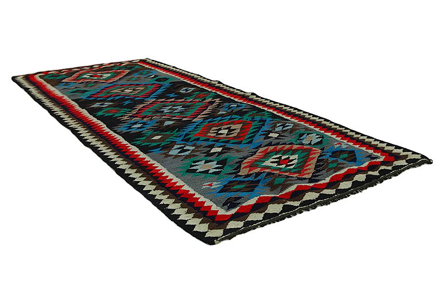 Tapis Kilim: C’est un type prècis du tapis-tissé sans velours (qui est le type précédent de celui avec le velours) et ils sont fabriqués surtout par des nomades en Perse, en Afghanistan, en Turquie et à des régions différentes de Caucasse. Il s’agit des tissés pas de grandes dimensions avec un tissage simple, sans velours. Ils ont comme des caractèristiques des figures géometriques et des associations des couleurs très riches. Des matières naturelles comme la laine sont utilisés pour le tissage et quelquefois aussi la soie pour les kilims plus legers et plus fins. Le chromatisme du fil est fait par des plantes et des métaux qui donnent de beaux nuances naturels. La tradition séculaire des kilims se perd aux siècles aux nomades d’Asie centrale. D’abord, les kilims étaient surtout des articles d’utilisation domestique et plus tard sont devenus des produits commercialisables en suivant les meilleurs techniques de la tapisserie d’ est pendant le 16ième et le 17ième siècle. Ils ont aussi plusieurs utilisations et ils peuvent être utilisés au plancher comme des couvertures ou pour décoration aux murs. Le nom Kilim vient du mot persan gelim. Ils s’appellent Berr en kurde. Les plus fameux kilims persans sont les kilims Sumakh, Senneh, Fars et Ghashghai. Des kilims afghans sont les kilims Golbariasta, Maimane, Taimani, Maliki e.t.c Plusiers kilims sont tissés aussi aux frontières entre la Perse et l’Afghanistan par des nomades de Balouch avec les couleurs foncées de Terre.