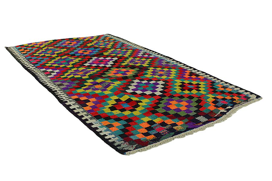 Tapis Kilim: C’est un type prècis du tapis-tissé sans velours (qui est le type précédent de celui avec le velours) et ils sont fabriqués surtout par des nomades en Perse, en Afghanistan, en Turquie et à des régions différentes de Caucasse. Il s’agit des tissés pas de grandes dimensions avec un tissage simple, sans velours. Ils ont comme des caractèristiques des figures géometriques et des associations des couleurs très riches. Des matières naturelles comme la laine sont utilisés pour le tissage et quelquefois aussi la soie pour les kilims plus legers et plus fins. Le chromatisme du fil est fait par des plantes et des métaux qui donnent de beaux nuances naturels. La tradition séculaire des kilims se perd aux siècles aux nomades d’Asie centrale. D’abord, les kilims étaient surtout des articles d’utilisation domestique et plus tard sont devenus des produits commercialisables en suivant les meilleurs techniques de la tapisserie d’ est pendant le 16ième et le 17ième siècle. Ils ont aussi plusieurs utilisations et ils peuvent être utilisés au plancher comme des couvertures ou pour décoration aux murs. Le nom Kilim vient du mot persan gelim. Ils s’appellent Berr en kurde. Les plus fameux kilims persans sont les kilims Sumakh, Senneh, Fars et Ghashghai. Des kilims afghans sont les kilims Golbariasta, Maimane, Taimani, Maliki e.t.c Plusiers kilims sont tissés aussi aux frontières entre la Perse et l’Afghanistan par des nomades de Balouch avec les couleurs foncées de Terre.