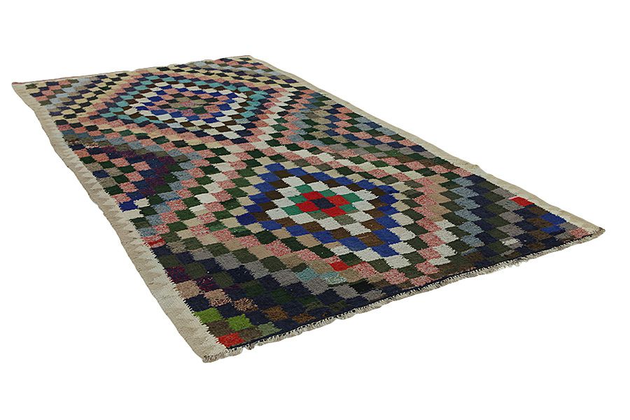Tapis Kilim: C’est un type prècis du tapis-tissé sans velours (qui est le type précédent de celui avec le velours) et ils sont fabriqués surtout par des nomades en Perse, en Afghanistan, en Turquie et à des régions différentes de Caucasse. Il s’agit des tissés pas de grandes dimensions avec un tissage simple, sans velours. Ils ont comme des caractèristiques des figures géometriques et des associations des couleurs très riches. Des matières naturelles comme la laine sont utilisés pour le tissage et quelquefois aussi la soie pour les kilims plus legers et plus fins. Le chromatisme du fil est fait par des plantes et des métaux qui donnent de beaux nuances naturels. La tradition séculaire des kilims se perd aux siècles aux nomades d’Asie centrale. D’abord, les kilims étaient surtout des articles d’utilisation domestique et plus tard sont devenus des produits commercialisables en suivant les meilleurs techniques de la tapisserie d’ est pendant le 16ième et le 17ième siècle. Ils ont aussi plusieurs utilisations et ils peuvent être utilisés au plancher comme des couvertures ou pour décoration aux murs. Le nom Kilim vient du mot persan gelim. Ils s’appellent Berr en kurde. Les plus fameux kilims persans sont les kilims Sumakh, Senneh, Fars et Ghashghai. Des kilims afghans sont les kilims Golbariasta, Maimane, Taimani, Maliki e.t.c Plusiers kilims sont tissés aussi aux frontières entre la Perse et l’Afghanistan par des nomades de Balouch avec les couleurs foncées de Terre.