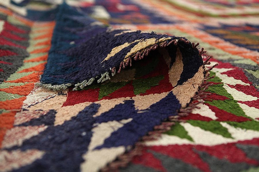 Tapis Kilim: C’est un type prècis du tapis-tissé sans velours (qui est le type précédent de celui avec le velours) et ils sont fabriqués surtout par des nomades en Perse, en Afghanistan, en Turquie et à des régions différentes de Caucasse. Il s’agit des tissés pas de grandes dimensions avec un tissage simple, sans velours. Ils ont comme des caractèristiques des figures géometriques et des associations des couleurs très riches. Des matières naturelles comme la laine sont utilisés pour le tissage et quelquefois aussi la soie pour les kilims plus legers et plus fins. Le chromatisme du fil est fait par des plantes et des métaux qui donnent de beaux nuances naturels. La tradition séculaire des kilims se perd aux siècles aux nomades d’Asie centrale. D’abord, les kilims étaient surtout des articles d’utilisation domestique et plus tard sont devenus des produits commercialisables en suivant les meilleurs techniques de la tapisserie d’ est pendant le 16ième et le 17ième siècle. Ils ont aussi plusieurs utilisations et ils peuvent être utilisés au plancher comme des couvertures ou pour décoration aux murs. Le nom Kilim vient du mot persan gelim. Ils s’appellent Berr en kurde. Les plus fameux kilims persans sont les kilims Sumakh, Senneh, Fars et Ghashghai. Des kilims afghans sont les kilims Golbariasta, Maimane, Taimani, Maliki e.t.c Plusiers kilims sont tissés aussi aux frontières entre la Perse et l’Afghanistan par des nomades de Balouch avec les couleurs foncées de Terre.