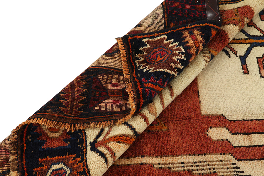 Tapis Qashqai: Les tapis Qashqai sont tissés par des nomades qui vivent à des régions montegnardes de Perse aux provinces de Fars, Kuzestan, au sud d’Isfahan et autour de la région de la ville Shiraz. Les tapis ont une grande densité en nœuds et une grande variété de dessins et en utilisant surtout le rouge profond et le bleu. Ils tissent des tapis, des kilims et des tissus décoratifs (des rubans, des sacs e.t.c) dans lesquels ils répresentent des instantanés de leur vie avec des représentations des hommes des animaux, des arbres et des fleurs. Aussi ils representent des images par des monuments historiques, surtout de Persepolis. Ils savent des dessins différents par cœur et ils tissent librement sans la contrainte sévère d’un dessin illustré.