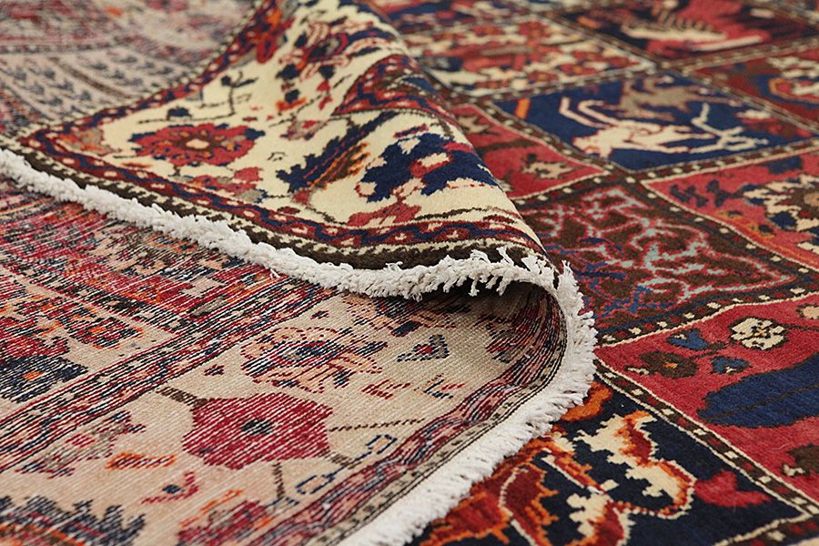 Tapis Bakhtiari: Les nomades Bakhtiar habitent dans les montagnes Zagros à l’ouest de la ville d’Isfahan autour de la ville de Shar-e-kurd. Leurs tapis sont connus pour leurs dessins de différents carrés répétitifs dans lesquels sont représentés des fleurs ou des animaux, d’où l’origine du nom de ce motif « jardin » (Khesti). Leurs tapis sont aussi très résistants avec un tissage en laine perse de très bonne qualité issue de moutons élevés en haute altitude. Les meilleurs tapis Bakhtiar avec la meilleure densité de nœuds sont les Bibibaff.