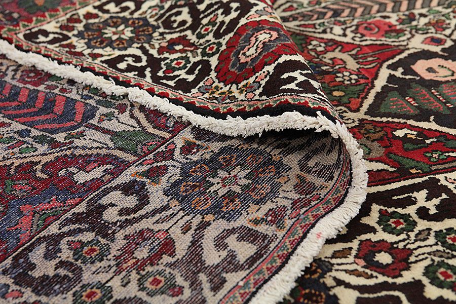 Tapis Bakhtiari: Les nomades Bakhtiar habitent dans les montagnes Zagros à l’ouest de la ville d’Isfahan autour de la ville de Shar-e-kurd. Leurs tapis sont connus pour leurs dessins de différents carrés répétitifs dans lesquels sont représentés des fleurs ou des animaux, d’où l’origine du nom de ce motif « jardin » (Khesti). Leurs tapis sont aussi très résistants avec un tissage en laine perse de très bonne qualité issue de moutons élevés en haute altitude. Les meilleurs tapis Bakhtiar avec la meilleure densité de nœuds sont les Bibibaff.