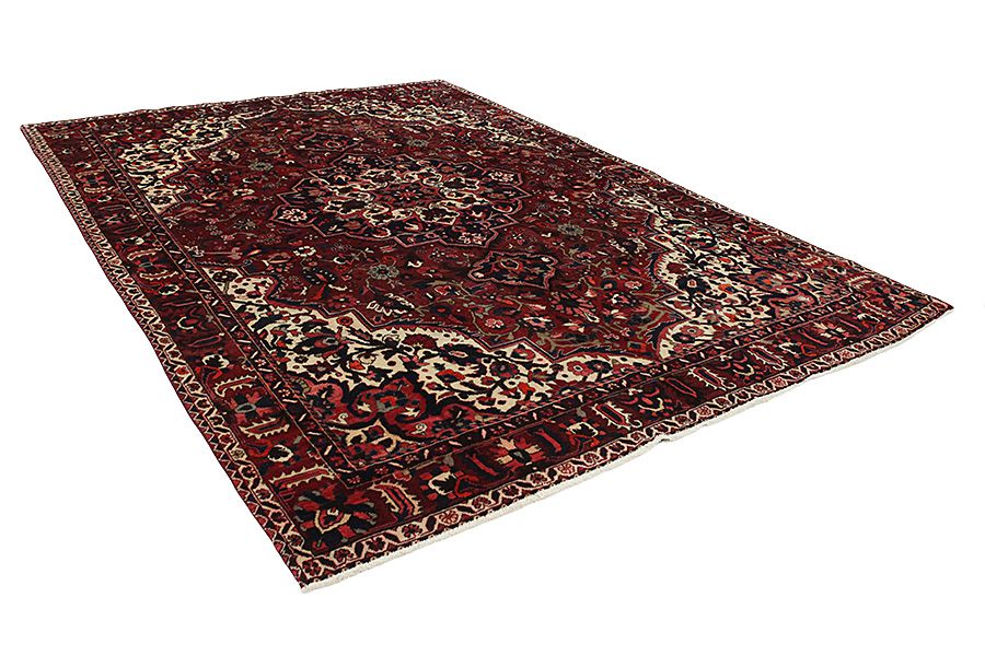 Tapis Bakhtiari: Les nomades Bakhtiar habitent dans les montagnes Zagros à l’ouest de la ville d’Isfahan autour de la ville de Shar-e-kurd. Leurs tapis sont connus pour leurs dessins de différents carrés répétitifs dans lesquels sont représentés des fleurs ou des animaux, d’où l’origine du nom de ce motif « jardin » (Khesti). Leurs tapis sont aussi très résistants avec un tissage en laine perse de très bonne qualité issue de moutons élevés en haute altitude. Les meilleurs tapis Bakhtiar avec la meilleure densité de nœuds sont les Bibibaff.