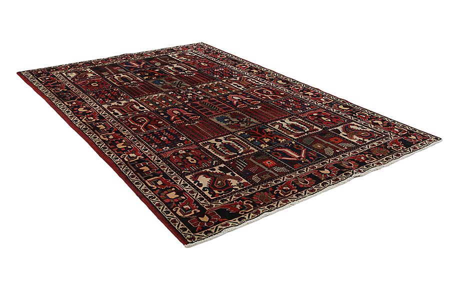Tapis Bakhtiari: Les nomades Bakhtiar habitent dans les montagnes Zagros à l’ouest de la ville d’Isfahan autour de la ville de Shar-e-kurd. Leurs tapis sont connus pour leurs dessins de différents carrés répétitifs dans lesquels sont représentés des fleurs ou des animaux, d’où l’origine du nom de ce motif « jardin » (Khesti). Leurs tapis sont aussi très résistants avec un tissage en laine perse de très bonne qualité issue de moutons élevés en haute altitude. Les meilleurs tapis Bakhtiar avec la meilleure densité de nœuds sont les Bibibaff.