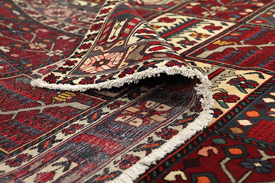 Tapis Bakhtiari: Les nomades Bakhtiar habitent dans les montagnes Zagros à l’ouest de la ville d’Isfahan autour de la ville de Shar-e-kurd. Leurs tapis sont connus pour leurs dessins de différents carrés répétitifs dans lesquels sont représentés des fleurs ou des animaux, d’où l’origine du nom de ce motif « jardin » (Khesti). Leurs tapis sont aussi très résistants avec un tissage en laine perse de très bonne qualité issue de moutons élevés en haute altitude. Les meilleurs tapis Bakhtiar avec la meilleure densité de nœuds sont les Bibibaff.