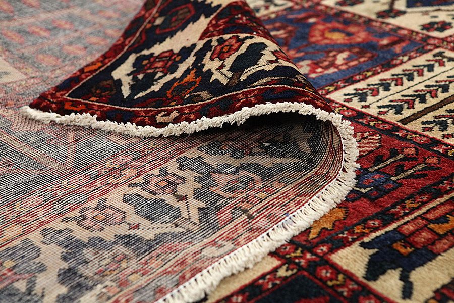 Tapis Bakhtiari: Les nomades Bakhtiar habitent dans les montagnes Zagros à l’ouest de la ville d’Isfahan autour de la ville de Shar-e-kurd. Leurs tapis sont connus pour leurs dessins de différents carrés répétitifs dans lesquels sont représentés des fleurs ou des animaux, d’où l’origine du nom de ce motif « jardin » (Khesti). Leurs tapis sont aussi très résistants avec un tissage en laine perse de très bonne qualité issue de moutons élevés en haute altitude. Les meilleurs tapis Bakhtiar avec la meilleure densité de nœuds sont les Bibibaff.