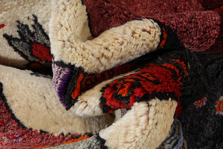 Tapis Abrash: Grâce à leur graisse différente de la laine et la quantité différente du sel pendant le processus de la teinture la laine a une différence absorptivité en ce qui concerne la qualité du couleur. Avant le tissage ce résultat n’est pas visible. Pendant le tissage des séries des nuances de la même couleur sont produits. On appelle cela "Abrash" et il nous montre que les laines ne sont pas traitées avec des matériels chimiques et ils sont laissés à montrer leur aspect naturel et leur originalité. Exemples