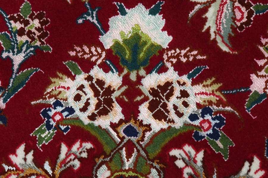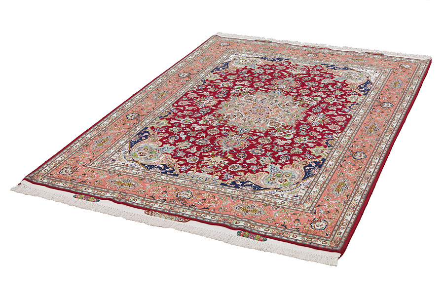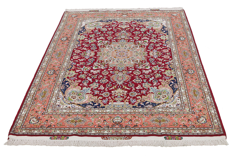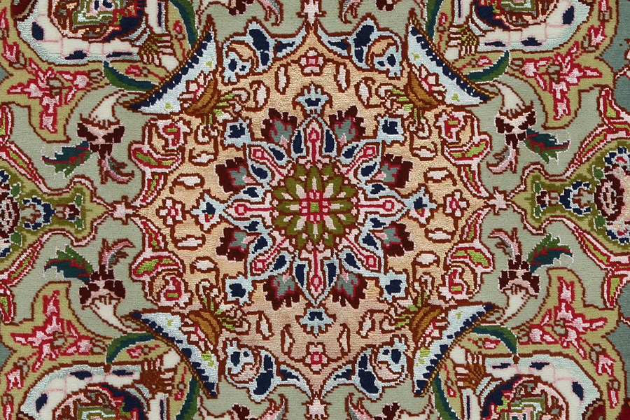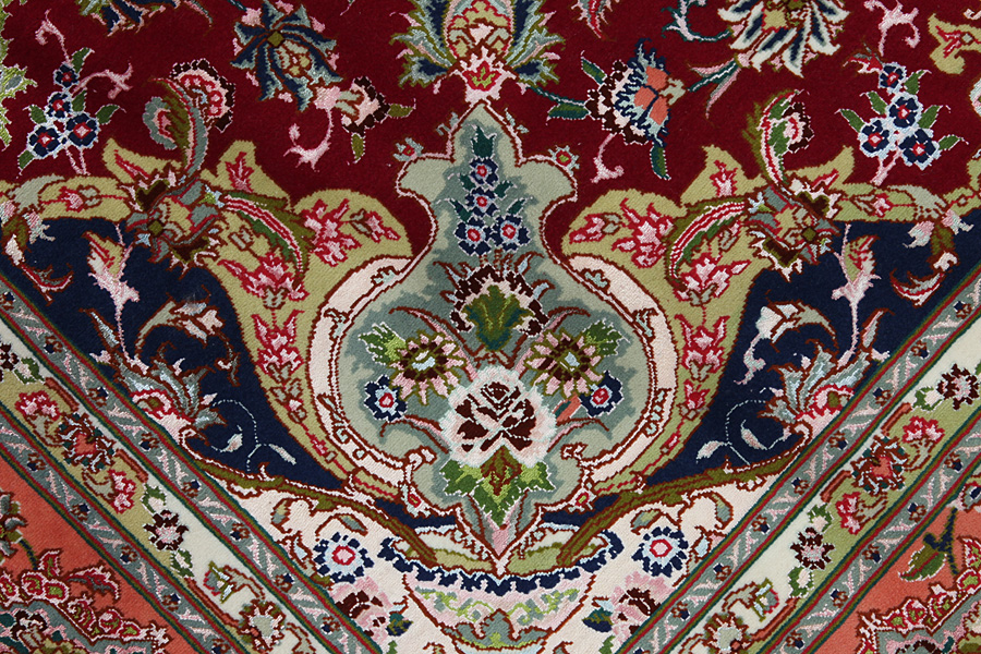 Tapis Tabriz: La ville Tabriz est la capitale de la province Azerbaïjan au sud-ouest d’Iran. Jusqu’à la fin de l’époque des caravanes Tabriz était le centre le plus important du commerce et du tissage des tapis. Par ici l’Ouest s’approvisionnait les chefs d’œuvres que des tisseurs renommés et capables tissent. Leurs qualités élevées ont fait les tapis connus aux marchés internationaux. Des atéliers des tapis noués à la main ont été crées où ils tissent de vieux et de nouveaux dessins avec une très grande densité en nœuds avec des matériaux de qualité excellente. La soie et la laine qualintative fine font les tapis de première classe. C’est la seule ville de Perse qui produit un si grand volume et et une si grande variété des tapis. Les tapis Tabriz sont impossants et ils ont leur style et leur originalité avec ou sans médaillon, avec des dessins pleins de l’imagination et de l’unicité des fleurs, des répresentations, des strophes, des poèmes à des couleurs comme le beige, le bleu et le rouge