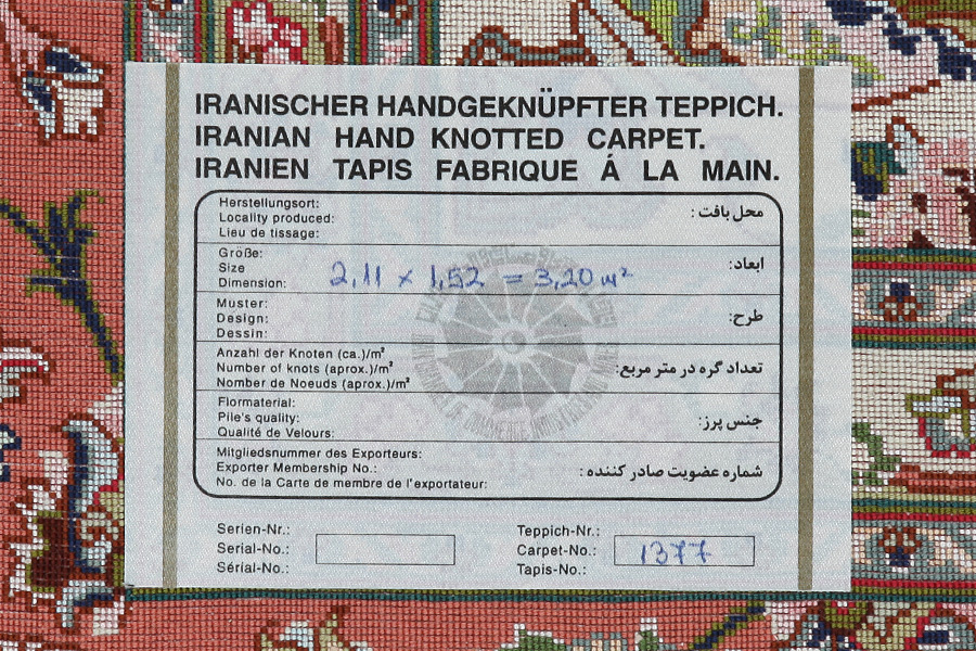 Tabriz Tapis Persan 211x152