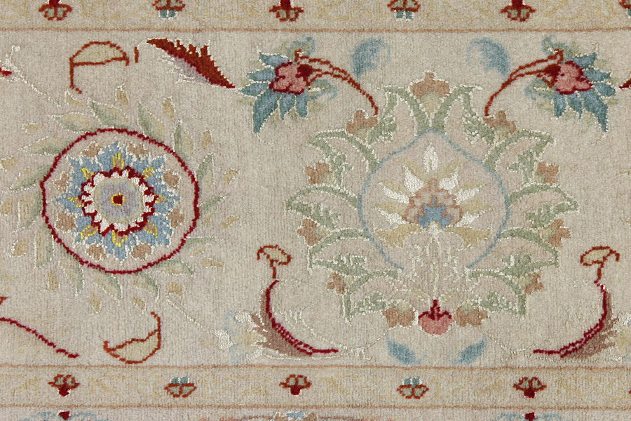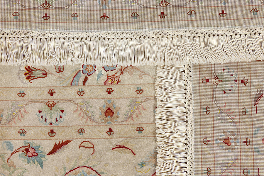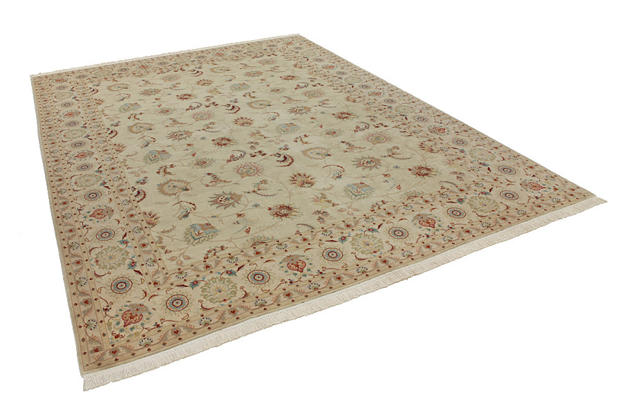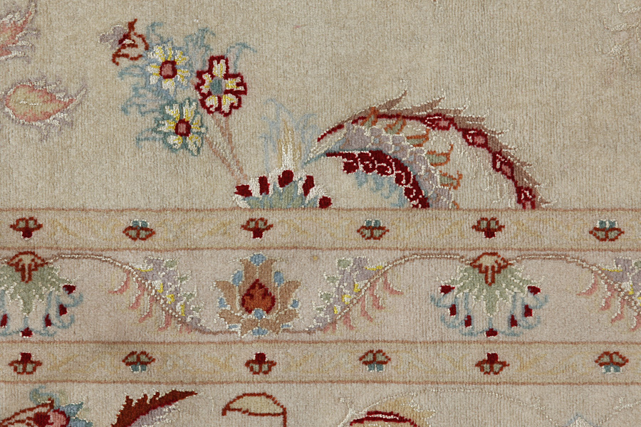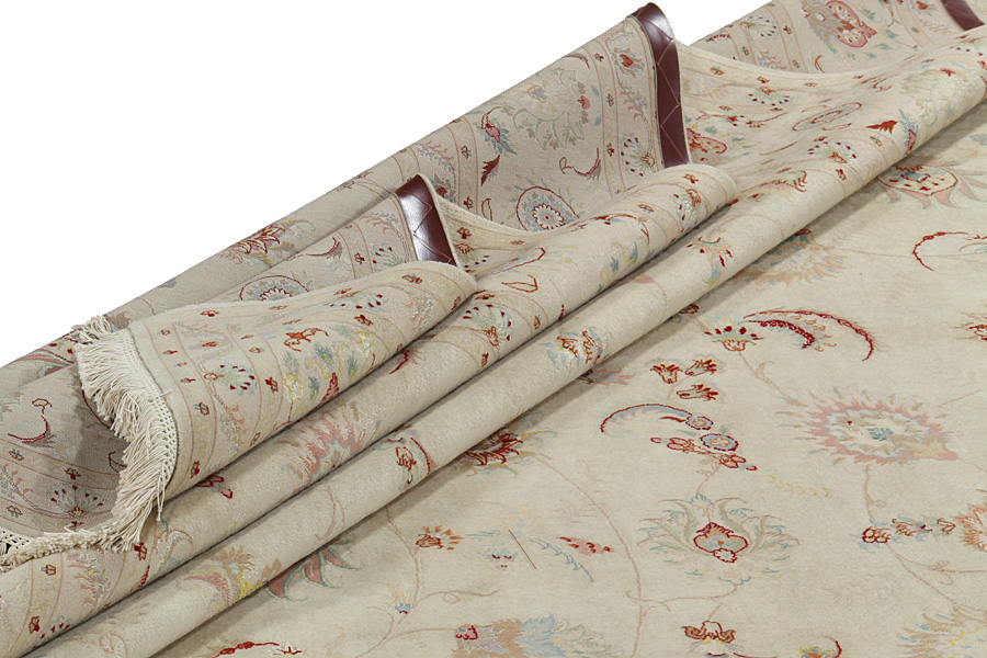 Tapis Tabriz: La ville Tabriz est la capitale de la province Azerbaïjan au sud-ouest d’Iran. Jusqu’à la fin de l’époque des caravanes Tabriz était le centre le plus important du commerce et du tissage des tapis. Par ici l’Ouest s’approvisionnait les chefs d’œuvres que des tisseurs renommés et capables tissent. Leurs qualités élevées ont fait les tapis connus aux marchés internationaux. Des atéliers des tapis noués à la main ont été crées où ils tissent de vieux et de nouveaux dessins avec une très grande densité en nœuds avec des matériaux de qualité excellente. La soie et la laine qualintative fine font les tapis de première classe. C’est la seule ville de Perse qui produit un si grand volume et et une si grande variété des tapis. Les tapis Tabriz sont impossants et ils ont leur style et leur originalité avec ou sans médaillon, avec des dessins pleins de l’imagination et de l’unicité des fleurs, des répresentations, des strophes, des poèmes à des couleurs comme le beige, le bleu et le rouge