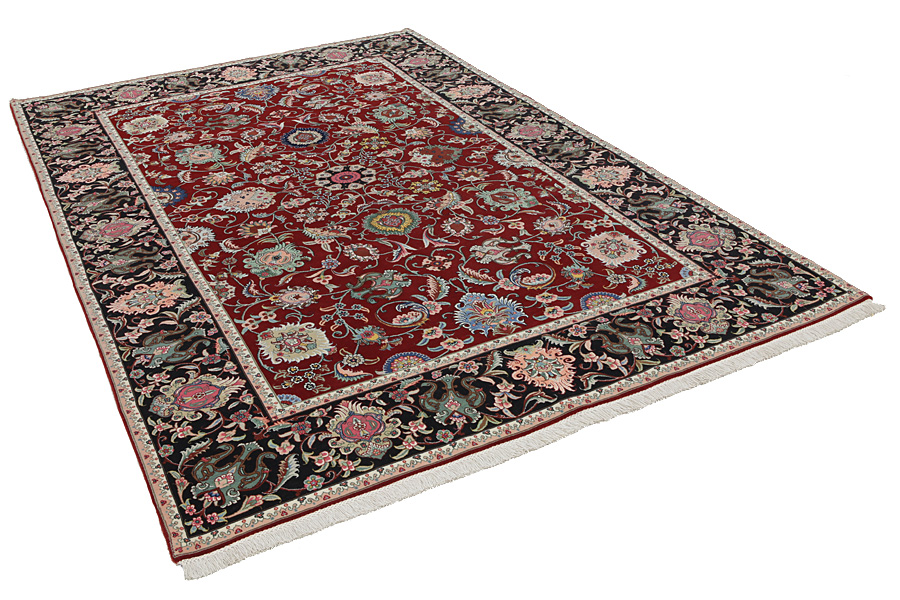 De stad Tabriz is de hoofdstad van de provincie Azerbeidzjan in Zuidwest Iran. Tot aan het einde van het "karavaan tijdperk" was de stad het meest belangrijkste centrum voor handel en tapijtweven. Tabriz voorzag het Westen van meesterwerken die werden gemaakt door bekende en capabele wevers. De hoge kwaliteit van de Tabriz tapijten heeft hen wereldwijde naamsbekendheid gegeven. Vele werkplaatsen werden opgericht waar handgeweven tapijten met erg hoge knoopdichtheid en met hoge kwaliteit materialen werden geweven. Het gebruikte zijde en de fijne kwaliteit wol plaatsen deze tapijten in een erg hoge categorie. Geen andere stad in Perzië produceerde op zo'n grote schaal zo veel gevarieerde tapijten. Met of zonder medaillon, hun patronen zitten vol fantasie en zijn stuk voor stuk uniek. Bloemen, taferelen en scènes, stanza's en gedichten versieren hen. De meestgebruikte kleuren zijn beige, blauw en rood.