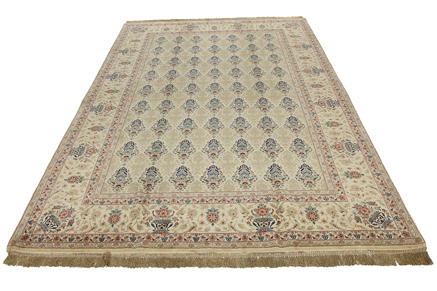 In het midden van Iran, tussen het Zagros-gebergte en de woestijn in, ligt de stad Isfahan. Tegenwoordig is het een belangrijk industriële stad met een populatie van 1,2 miljoen. De stad staat vol met architectonische meesterwerken. De oude tapijten van Isfahan, in tegenstelling tot de nieuwe, hadden geen medaillon in het midden. Het hele oppervlak van het tapijt was gevuld met bloemenslingers en palmetten. De nieuwere Isfahan tapijten en kleden kunnen niet vergeleken worden met die schitterende oude exemplaren die exclusief geweven werden voor nobelen. Maar in navolging van die traditie zijn de hedendaagse tapijten van Isfahan fijn geweven en erg kort geschoren, zodat het patroon beter te zien is. Er is tijdens het weven ook gebruik gemaakt van zijde om accenten aan te brengen, voornamelijk in de bloemen. De schering is gemaakt van zijde of katoen.