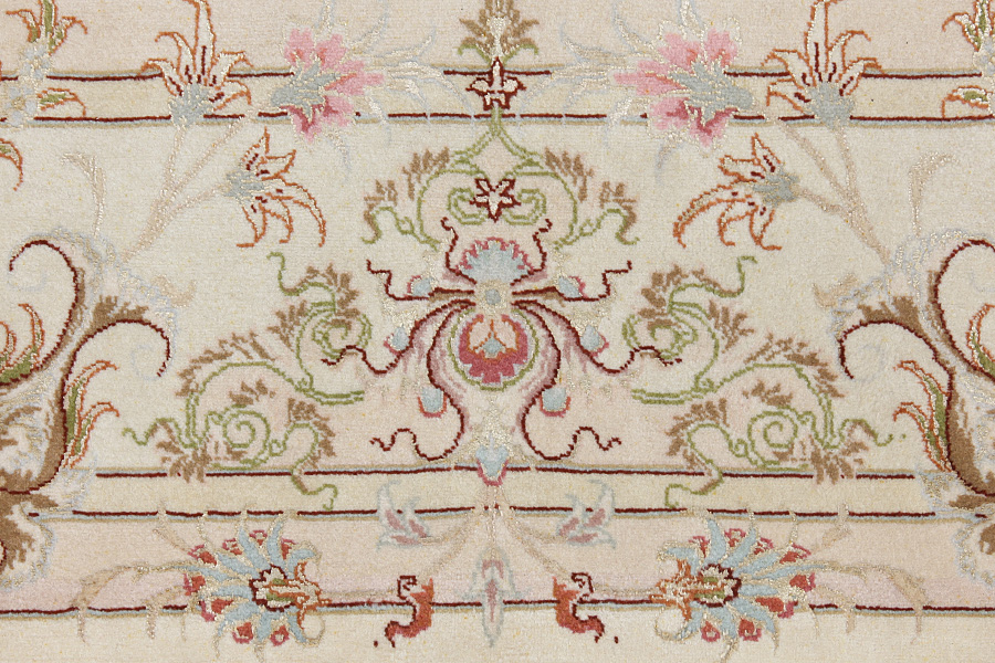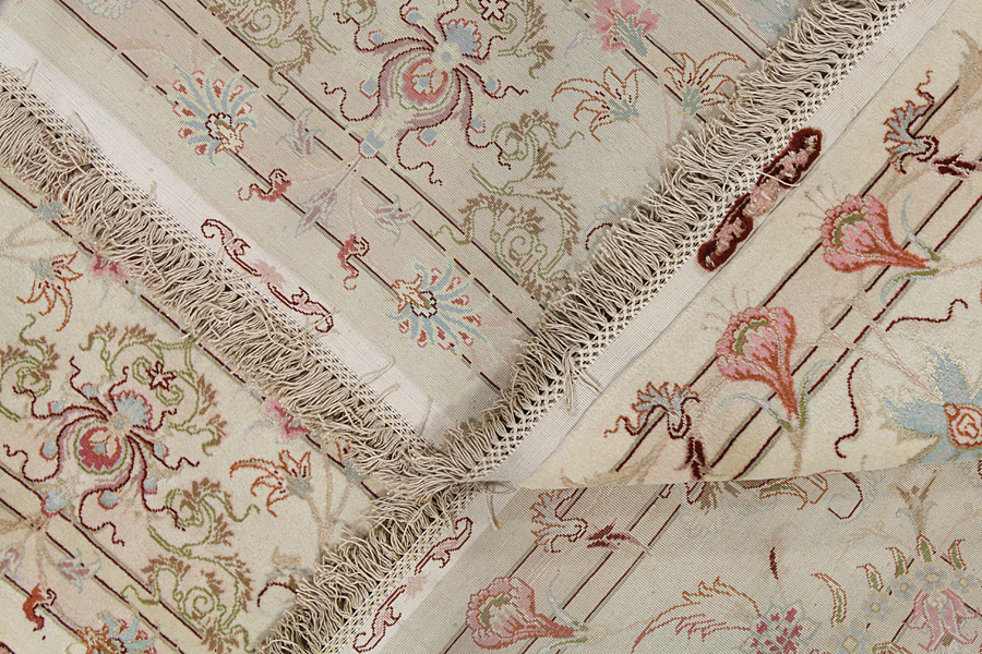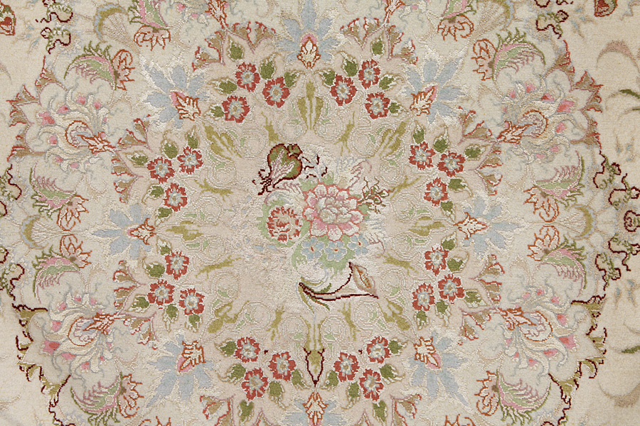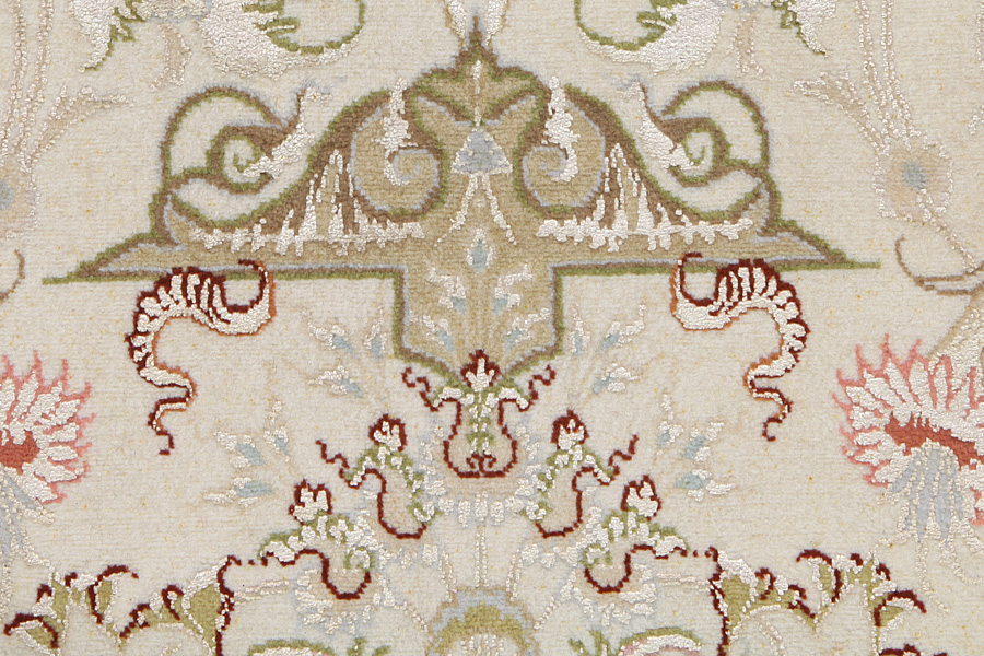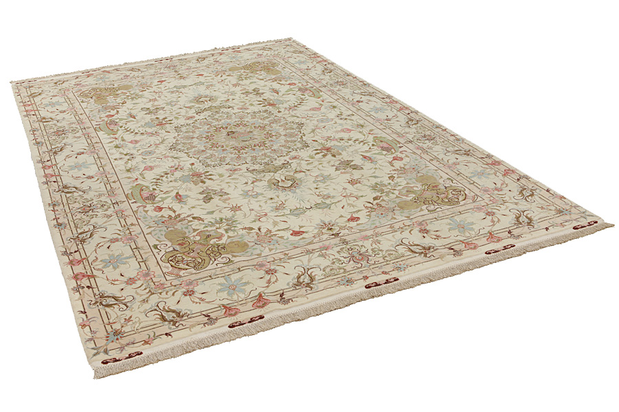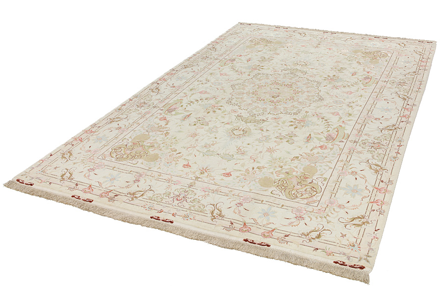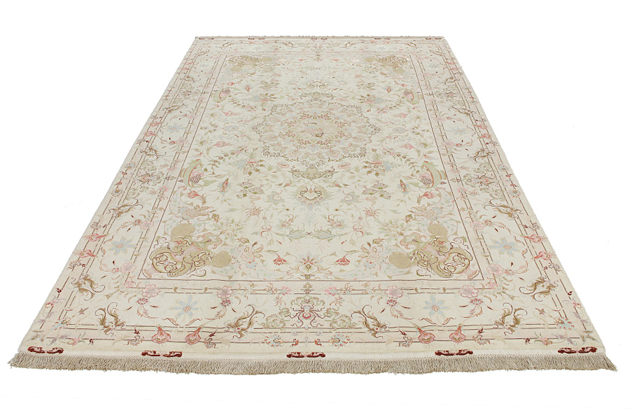Tapis Tabriz: La ville Tabriz est la capitale de la province Azerbaïjan au sud-ouest d’Iran. Jusqu’à la fin de l’époque des caravanes Tabriz était le centre le plus important du commerce et du tissage des tapis. Par ici l’Ouest s’approvisionnait les chefs d’œuvres que des tisseurs renommés et capables tissent. Leurs qualités élevées ont fait les tapis connus aux marchés internationaux. Des atéliers des tapis noués à la main ont été crées où ils tissent de vieux et de nouveaux dessins avec une très grande densité en nœuds avec des matériaux de qualité excellente. La soie et la laine qualintative fine font les tapis de première classe. C’est la seule ville de Perse qui produit un si grand volume et et une si grande variété des tapis. Les tapis Tabriz sont impossants et ils ont leur style et leur originalité avec ou sans médaillon, avec des dessins pleins de l’imagination et de l’unicité des fleurs, des répresentations, des strophes, des poèmes à des couleurs comme le beige, le bleu et le rouge