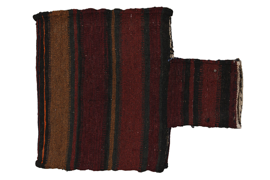 Tapis Saddle Bag: ​​Les sacs pour selle à cheval sont faits par les Nomades pour les utiliser eux-mêmes. Il existe 2 types de sacs :les sacs pour selle-kilim et des sacs pour selle noués. Le coté avant d’un sac est soit noué avec des nœuds (comme un tapis) soit utilise des techniques différentes. Le côté derrière est souvent noué alors que pour le centre du sac des techniques différentes (comme par exemple la technique Soumak) sont appliquées. Les couleurs avec lesquelles les sacs sont teints sont toutes naturelles et faites par les Nomades eux-mêmes. Les voyageurs utilisaient ces sacs pour transporter des denrées quotidiennes à cheval ou à dos d' âne. Il s'agit d'une pièce d’art exceptionnelle qui peut apporter une ambiance orientale unique chez-vous. Ces sacs peuvent être utilisés comme coussins d'assise, comme poufs au sol (par exemple près de la cheminée) ou pour décorer vos murs. De plus ces petits sacs pour selle de cheval peuvent être utilisés pour stocker vos journaux ou vos magazines.