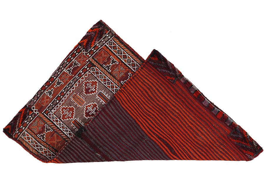 Zadeltassen zijn gemaakt door nomaden voor eigen gebruik. Er kan een onderscheid gemaakt worden tussen de Kelim zadeltassen en geknoopte zadeltassen. De voorkant van een geknoopte zadeltas is of geknoopt zoals een gewoon tapijt of er zijn verschillende technieken gebruikt. De zijkanten zijn vaak geweven terwijl het middenstuk verschillende weeftechnieken kan bevatten, zoals Kelim of Soumak. De kleuren waarmee de tassen geverfd zijn, zijn allemaal geheel natuurlijk en worden door de nomaden zelf gemaakt. Dit geldt voor alle andere nomadentapijten ook. Deze soort tassen werden vroeger gebruikt door reizigers om dagelijkse benodigdheden te vervoeren op ezels of paarden. Het is een kunststuk dat de unieke Oriëntaalse sfeer in uw huis zal brengen. Deze zadeltassen kunnen gebruikt worden als kussen, als wandversiering, maar ook als poef voor bijvoorbeeld de openhaard. De kleinere tassen kunt u ook over de bankleuning hangen met erin bijvoorbeeld kranten en tijdschriften.