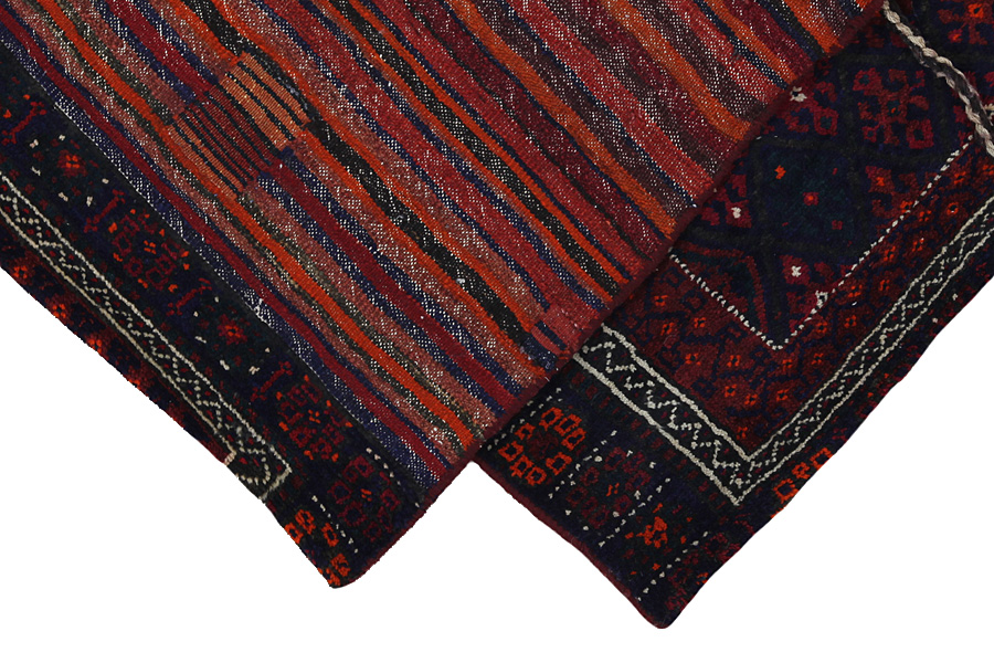 Tissé à l’un ou à tous les deux côtés du largeur du tapis: À quelques tapis les nomades à une côté tissent des franges à un kilim étroit qu’ils les tissent des petites tresses. C’est la technique des tisseurs différents pour reussir une meilleure résistance ou pour montrer leur habilété. Exemples