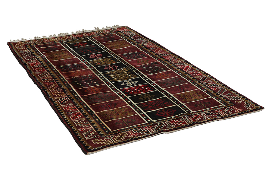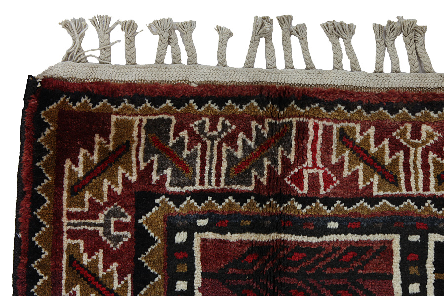 Tissé à l’un ou à tous les deux côtés du largeur du tapis: À quelques tapis les nomades à une côté tissent des franges à un kilim étroit qu’ils les tissent des petites tresses. C’est la technique des tisseurs différents pour reussir une meilleure résistance ou pour montrer leur habilété. Exemples