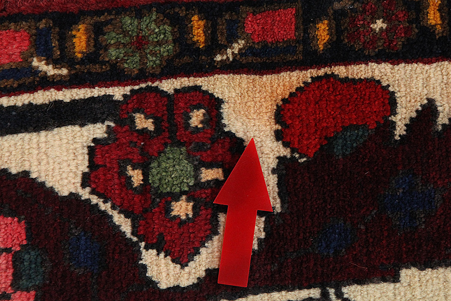 Tapis Abrash: Grâce à leur graisse différente de la laine et la quantité différente du sel pendant le processus de la teinture la laine a une différence absorptivité en ce qui concerne la qualité du couleur. Avant le tissage ce résultat n’est pas visible. Pendant le tissage des séries des nuances de la même couleur sont produits. On appelle cela "Abrash" et il nous montre que les laines ne sont pas traitées avec des matériels chimiques et ils sont laissés à montrer leur aspect naturel et leur originalité. Exemples