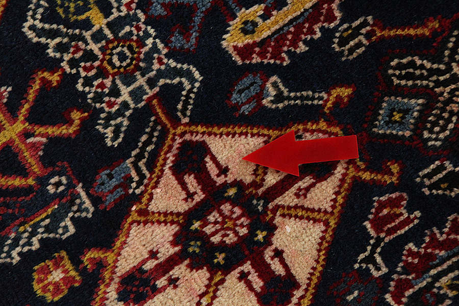 Abrash: door de verschillende gradaties van vet in de wol en het toegevoegde zout tijdens het verfproces, absorbeert de wol de kleur in afwisselende mate. Dit is voor het weven nauwelijks zichtbaar. Tijdens het weven worden echter lijnen met dezelfde kleur in het tapijt gevormd. Dit wordt Abrash (wat in het Farsis "kleine wolk" betekent) genoemd en het laat zien dat de wol niet geverfd is met chemische middelen en het benadrukt de authenticiteit en puurheid van het tapijt. Voorbeelden