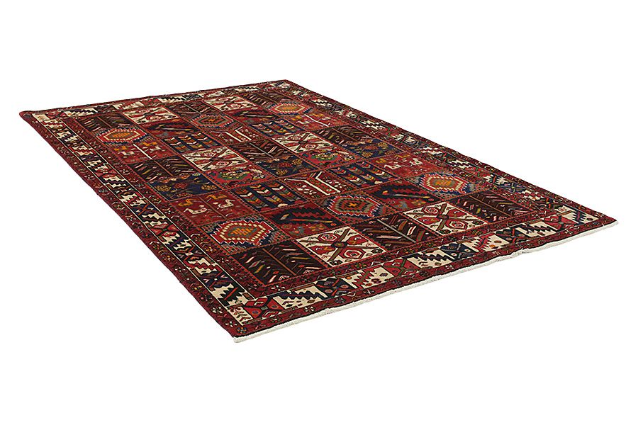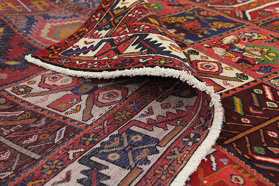 Tapis Bakhtiari: Les nomades Bakhtiar habitent dans les montagnes Zagros à l’ouest de la ville d’Isfahan autour de la ville de Shar-e-kurd. Leurs tapis sont connus pour leurs dessins de différents carrés répétitifs dans lesquels sont représentés des fleurs ou des animaux, d’où l’origine du nom de ce motif « jardin » (Khesti). Leurs tapis sont aussi très résistants avec un tissage en laine perse de très bonne qualité issue de moutons élevés en haute altitude. Les meilleurs tapis Bakhtiar avec la meilleure densité de nœuds sont les Bibibaff.